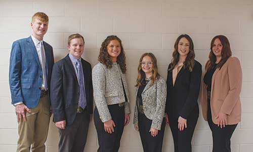 The 2026-2027 Henry C. Gardiner scholars are (left to right): Lyle Perrier, Eureka, Kansas; Drew Mickey, Taylorville, Illinois; Anna Webel, Farmington, Illinois; Brooklyn Plumb, Haxtun, Colorado; Avery Ziegler, WaKeeney, Kansas; and Laken Dyn, Jordanville, New York.